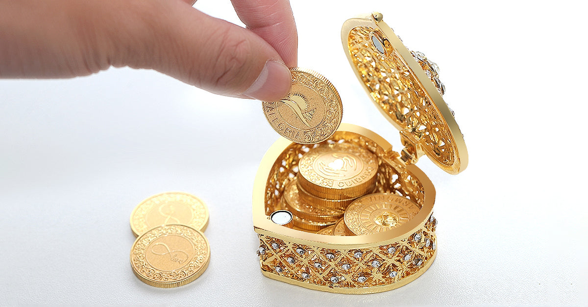 Maaari mong piliin ang iyong paboritong kahon upang ipakita ang mga barya sa kasal na ito o kolektahin ang mga ito.